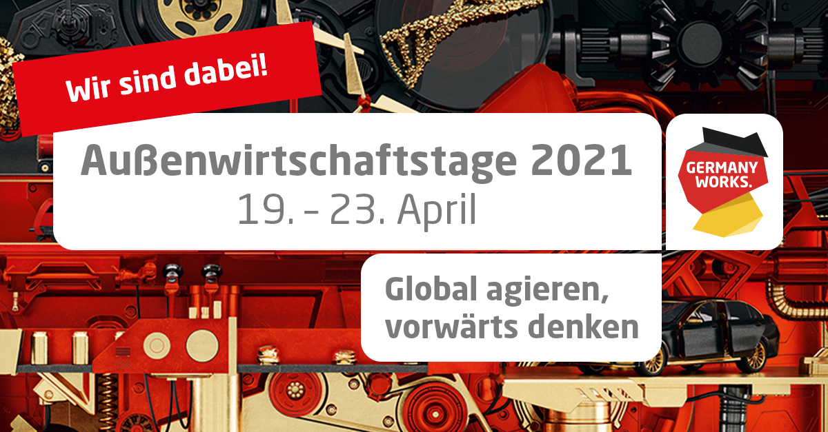 Die genannte Veranstaltung findet als Partnerforum im Rahmen der BMWi Aussenwirtschaftstage 2021 statt. Zugang zu rund 70 spannenden Fachforen erhalten Sie hier.